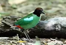 仙八色鸫是雀形目八色鸫科八色鸫属鸟类。雄鸟前额至枕部深栗色,有黑色中央冠纹,眉纹淡黄,背、肩及内侧飞羽辉绿色,飞羽黑色具白翼斑,颏黑褐、喉白,下体淡黄褐色、腹中及尾下覆羽朱红色。雌鸟羽色似雄鸟但较浅淡。…全部>>