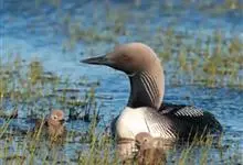 黑喉潜鸟为潜鸟目下的大型水禽,体长56-75厘米,体重雄性3.3-3.8千克,雌性2-3.1千克。个体较红喉潜鸟大,嘴直,颈粗而长,常弯曲成优美的S型。…全部>>