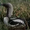 黑喉潜鸟为潜鸟目下的大型水禽,体长56-75厘米,体重雄性3.3-3.8千克,雌性2-3.1千克。个体较红喉潜鸟大,嘴直,颈粗而长,常弯曲成优美的S型。…全部>>
