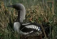白嘴潜鸟为潜鸟目潜鸟科下的大型水禽,别名黄嘴潜鸟是潜鸟中个体最大者,体长75-100厘米。嘴粗厚而向上翘、黄白色,颈较粗,前额明显的隆起。夏羽头和颈黑色,…全部>>