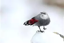 红翅旋壁雀:体重15-23克,体长120-178毫米。是一种体型略小的鸟类。尾短而嘴长,翼具醒目的绯红色斑纹。飞羽黑色,外侧尾羽羽端白色显著,初级飞羽两排白色点斑飞行时成带状。繁殖期雄鸟脸及喉黑色,…全部>>