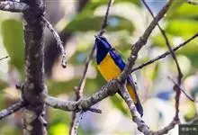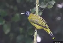 黑冠黄鹎:体长18-21厘米,是一种中等体型偏黄色鹎。整个头、颈、颏、喉黑色,头顶有显著直立的羽冠,黑色,上体褐橄榄黄绿色,下体橄榄黄色。虹膜偏红;嘴及脚黑色。…全部>>