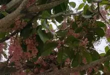 假苹婆是锦葵科苹婆属乔木植物。幼枝被毛;叶椭圆形或披针形,先端骤尖,基部钝或近圆无毛;圆锥花序腋生,花淡红色;蓇葖果鲜红色,长卵圆形或长椭圆形;种子卵圆形黑褐色;花期4-6月。…全部>>