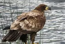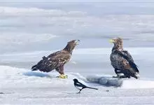 白头海雕又名美洲雕。是大型猛禽,成年海雕体长可达1米,翼展2米多长。眼、嘴和脚为淡黄色,头、颈和尾部的羽毛为白色,身体其他部位的羽毛为暗褐色,十分雄壮美丽。主要栖息在海岸、湖沼和河流附近,以大马哈鱼…全部>>