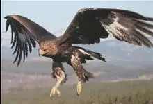 金雕:属于鹰科、雕属的猛禽。体长76-102厘米,翼展达2.3米,体重2-6.5千克。雌雄同色。未成年时,头、颈黄棕色;两翼飞羽除了最外侧三枚外基部均缀有白色,其余身体部分暗褐色;羽尾灰白色,…全部>>