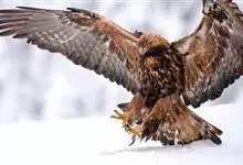 金雕:属于鹰科、雕属的猛禽。体长76-102厘米,翼展达2.3米,体重2-6.5千克。雌雄同色。未成年时,头、颈黄棕色;两翼飞羽除了最外侧三枚外基部均缀有白色,其余身体部分暗褐色;羽尾灰白色,…全部>>