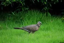 珠颈斑鸠,别名花斑鸠、珍珠鸠、花脖斑鸠、鸪鹪,是鸠鸽科副斑鸠属鸟类。体型中等,体长27~34cm,体重120~205g,雌鸟和雄鸟羽色相似,但雌鸟不如雄鸟羽色亮泽。珠颈斑鸠前额至头顶羽色稍淡,…全部>>