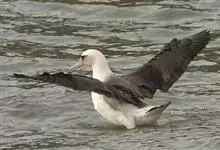 黑背信天翁:是一种中等体型的信天翁,81厘米长,体重2210-2800克,是一种有极长翼羽的大鸟,翅狭长,翼展195-215厘米。雄性略大。鼻孔侧位,不愈合。特征为自颏至臀部为全白色,但翼上及背深色…全部>>