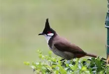 白头鹎是雀形目鹎科鹎属鸟类,别名有白头翁、白头婆、淡臀鹎、中国鹎等。喙黑色,嘴峰稍曲,端部下曲,具近端缺刻;鼻孔裸露,具瓣膜和嘴须;额至头顶黑色,虹膜褐色,眼至后枕白色,耳羽后端具一小白斑,…全部>>