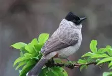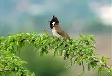 白颊鹎是雀形目鹎科鸟类。体长19—21厘米。雌雄相似。成鸟头部深灰色具一显著的羽冠,白色脸侧具一黑色点状斑纹。颏部、喉部黑色;胸部、腹部、两胁近白色;背部、两翼近灰色;尾下覆羽黄色,尾羽灰色,…全部>>