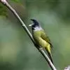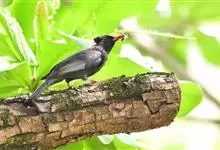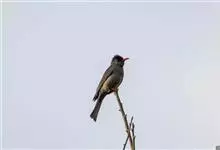 黑头鹎:体长17厘米。是一种中等体型的偏黄色鹎。特征为头辉黑、喉黑而眼蓝。上体黄橄榄色;两翼及尾偏黑,具明显的黄色尾端;下体绿黄色。另一罕见色型为灰色,尾缘白色。与黑冠黄鹎的区别在无羽冠且尾端黄色。…全部>>