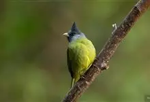 凤头雀嘴鹎:属小型鸟类,体长18-22厘米。嘴粗短、呈象牙色或乳黄色,前额和脸灰色,头顶黑色,有一朝前竖立的黑色羽冠。上体橄榄绿色,下体黄绿色,尾羽黄绿色具宽阔的黑褐色端斑。…全部>>