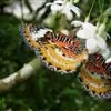 猫头鹰蝶是举世闻名的常见大型蝶类。整个翅面酷似猫头鹰的脸,是极其巧妙的伪装。猫头鹰蝶的名字来源于其翅膀上的图案,在下层两侧翅膀上,一对和猫头鹰眼睛一样的图案,看起来像凶神恶煞。其实它的功能在欺骗捕食…全部>>