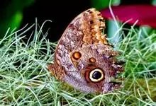 猫头鹰蝶是举世闻名的常见大型蝶类。整个翅面酷似猫头鹰的脸,是极其巧妙的伪装。猫头鹰蝶的名字来源于其翅膀上的图案,在下层两侧翅膀上,一对和猫头鹰眼睛一样的图案,看起来像凶神恶煞。其实它的功能在欺骗捕食…全部>>