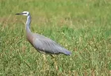 白脸鹭:体长60-70厘米,体重550克。成鸟相对其他鹭科鸟类要小,正如它的名字,很容易通过白脸鹭的蓝灰色身体和独特的白脸来识别。嘴长而尖直,翅大而长,脚和趾均细长,胫部部分裸露,脚三趾在前一趾在后,…全部>>