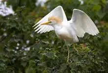牛背鹭:体较肥胖,喙和颈较短粗。夏羽大都白色;头和颈橙黄色,前颈基部和背中央具羽枝分散成发状的橙黄色长形饰羽;前颈饰羽长达胸部,背部饰羽向后长达尾部,尾和其余体羽白色。冬羽通体全白色,个别头顶缀有黄色,…全部>>
