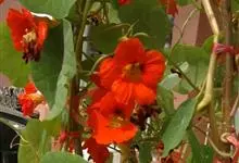 旱金莲是旱金莲科旱金莲属蔓生一年生草本植物。叶互生,叶柄向上扭曲,盾状,叶圆形,具波状浅缺刻,下面疏被毛或有乳点;花黄、紫、桔红或杂色,花托杯状,花瓣为圆形,边缘具缺刻;果实为扁球形;花果期6-10月,…全部>>