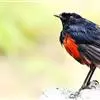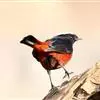 红头咬鹃: 体大,体长约33厘米,体重75-110克。头、颈暗绯红色;背、肩锈褐色。两翅黑色,翅上覆羽和内侧飞羽密被白色细虫蠹斑纹,初级飞羽黑色,外侧具白色羽缘;腰和尾上覆羽较多锈色。中央尾羽深栗色,…全部>>