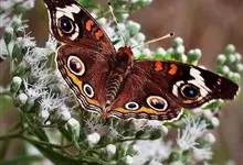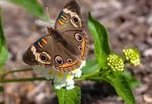美眼蛱蝶为鳞翅目、蛱蝶科、眼蛱蝶属节肢动物。除西北外,全国各地均有分布,国外分布于日本及东南亚。幼虫以马鞭草科的过江藤、车前草科的车前草等为食。全部>>