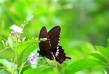 玉斑凤蝶Papilio helenus 别名白纹凤蝶,是凤蝶科凤蝶属美凤蝶亚属大型种类。雌雄同型;体翅皆黑色,后翅正面中室外有3个并列的白色斑,亚外缘有1列模糊的新月形红色斑,…全部>>
