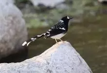 白额燕尾是雀形目鸫科燕尾属鸟类,又叫水鸦雀、白冠燕尾、黑背燕尾。前额至头顶具白斑,头余部、颈、背、喉及胸黑色,腰、腹部及尾下覆羽白色,两翼黑色且具白色翼斑;尾上覆羽黑色并具白色端斑,中央尾羽最短,…全部>>