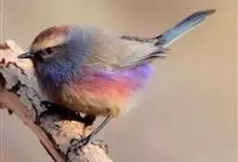 凤头雀莺:小型鸟类。体长9-10厘米,雄鸟呈毛茸茸的紫色和绛紫色,顶冠淡紫灰色,额及凤头白色,尾全蓝。雌鸟喉及上胸白,至臀部渐变成淡紫色,耳羽灰,…全部>>