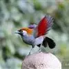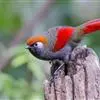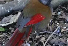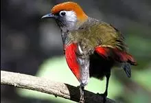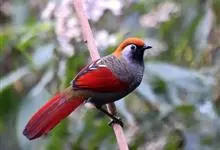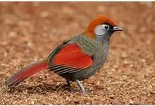 赤尾噪鹛中型鸟类,体长24~28厘米。头顶至后颈红棕色,两翅和尾鲜红色,眼先、眉纹、颊、颏和喉黑色,眼后有一灰色块斑。其余上下体羽大都暗灰或橄榄灰色。特征极明显,特别是通过鲜红色的头顶、翅和尾。…全部>>