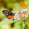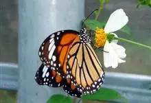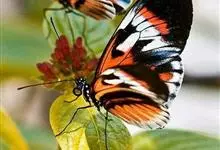 黑脉金斑蝶:翅阔8.6-12.4厘米。雄蝶较雌蝶为大。成年蝶颜色鲜艳,翅膀上有显眼的橙色及黑色斑纹,周围是宽阔的黑色边框,布有许多白色斑点。这种引人注目的着色是对捕食者的视觉警告,表示这个物种有毒;…全部>>