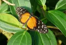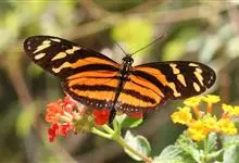 虎斑蝶,Danaus genutia ,是斑蝶属的一种,常见于湿地公园内。雄性虎斑蝶经常伏于吊裙草 上吸食汁液,以制造吸引异性的香气。虎斑蝶翅膀腹面鲜橙色,翅脉和翅边缘黑色,边缘上有两行小白点,…全部>>