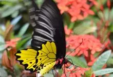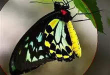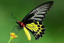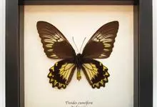 金裳凤蝶是凤蝶科、裳凤蝶属的动物。金裳凤蝶身体呈黑色,头、颈和胸侧有红毛,腹部有黑黄两色相间条纹,雄蝶前翅黑色,具黑天鹅绒光泽,各脉两侧灰白色,后翅金黄色,各室外缘有等腰三角形黑斑1枚,斑内侧有晕,…全部>>