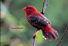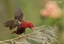 红梅花雀小型鸟类,体长9-10厘米。雄鸟通体朱红色,背、肩、胸等满布白色小斑点,两翅和尾黑褐色均具白色端斑,嘴红色,脚蜡黄色。雌鸟上体淡褐色或赭褐色,翅上中覆羽、大覆羽和内侧飞羽末端具白色斑点,…全部>>