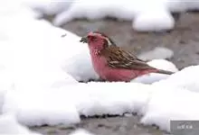 喜马拉雅白眉朱雀:小型鸟类,体长15-17厘米,体重24-35克。额基、眼先深红色,前额和一条长而宽阔的眉纹珠白色沾有粉红色并具丝娟光泽,在暗色的头部极为醒目。头顶至背棕褐或红褐色、具黑褐色羽干纹,…全部>>