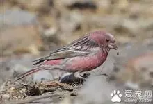 藏朱雀:全长约17-18厘米。雄鸟头部深红色具光辉,喉部暗红色具白色点斑;背部灰白色,各羽具玫瑰红色羽端,形成许多斑纹;腰部淡玫瑰红色;翅暗褐色,沾灰白,羽端沾玫瑰红或灰白色;尾暗棕色,端缘玫瑰红色…全部>>