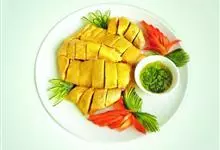 白切鸡又叫白斩鸡,是粤菜系鸡肴中的一种,始于清代的民间酒店。属浸鸡类。其特点为制作简易,刚熟不烂,不加配料且保持原味。白切鸡通常选用三黄鸡与沙姜、蒜茸、葱等食材,慢火煮浸后,晾干切块。成菜后,…全部>>
