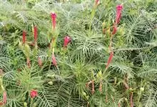茑萝是旋花科番薯属属一年生柔弱缠绕草本植物。叶卵形或长圆形,羽状深裂至中脉,基部常具假托叶;花序腋生,由少数花组成聚伞花序,花直立,花柄较花萼长,在果时增厚成棒状;萼片绿色,椭圆形至长圆状匙形,…全部>>