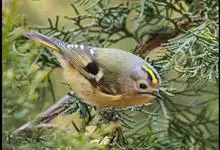 戴菊小型鸟类,体长9~10厘米。上体橄榄绿色。头顶中央柠檬黄色或橙黄色羽冠,两侧有明显的黑色侧冠纹,眼周灰白色。腰和尾上覆羽黄绿色,两翅和尾黑褐色,尾外翈羽缘橄榄黄绿色,初级和次级飞羽羽缘淡黄绿色,…全部>>