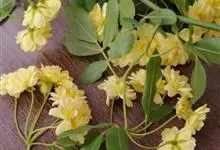 黄木香花 Rehd.)是蔷薇科、蔷薇属植物,为木香花的变型品种,攀缘小灌木,高可达6米。小叶3-5枚,稀7枚,小叶片椭圆形或长圆状披针形,先端急尖或稍钝,基部近圆形或宽楔形,边缘有紧贴细锯齿。花小型,…全部>>