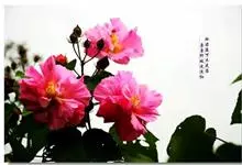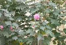 木芙蓉,锦葵科木槿属落叶灌木或小乔木。小枝上有细绒毛;叶片为卵状心形,托叶为披针形,常早落;花单生,花萼为钟形,花冠初为白色或淡红色,后逐渐变为深红色;果实为扁球形,有淡黄色的毛附着。花期8到10月。…全部>>