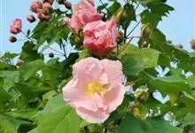 海滨木槿是锦葵科木槿属植物,落叶小乔木,株高3-5米,胸径20厘米,扁球形树冠,枝叶繁盛。厚纸质单叶互生,扁圆形、倒卵形或宽倒卵形,先端钝近平,具短突尖,基部圆形或浅心形,叶缘中上部具细圆齿,…全部>>