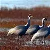 白枕鹤体形与丹顶鹤相似,略小于丹顶鹤,而大于白头鹤。上体为石板灰色。尾羽为暗灰色,末端具有宽阔的黑色横斑。取食时主要用喙啄食,或用喙先拨开表层土壤,然后啄食埋藏在下面的种子和根茎,边走边啄食。…全部>>