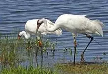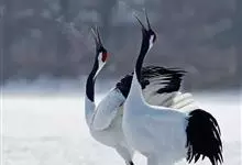 丹顶鹤:是鹤科、鹤属的一种大型涉禽,体长120-160厘米。颈、脚较长,通体大多白色,头顶鲜红色,喉和颈黑色,耳至头枕白色,脚黑色,站立时颈、尾部飞羽和脚黑色,头顶红色,…全部>>