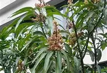 杧果,漆树科杧果属植物常绿大乔木植物,茎干较细,深绿色,呈圆柱形;叶子较大,为披针形,油绿而芳;花朵呈圆锥状,花小而多,红色或黄色;果实较大,表皮橘红色,表面光滑无毛;花期5—6月;果期7—8月。…全部>>