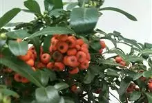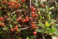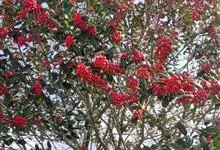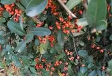 火棘 H. L. Li)是蔷薇科火棘属常绿灌木,老枝呈暗褐色;叶片呈倒卵形,边缘有钝锯齿,齿尖向内弯,两面皆无毛;叶柄短,无毛或嫩时有柔毛;花序是复伞房状,花瓣呈白色近圆形;果球近圆形,…全部>>