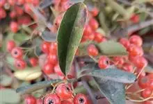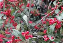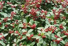 火棘 H. L. Li)是蔷薇科火棘属常绿灌木,老枝呈暗褐色;叶片呈倒卵形,边缘有钝锯齿,齿尖向内弯,两面皆无毛;叶柄短,无毛或嫩时有柔毛;花序是复伞房状,花瓣呈白色近圆形;果球近圆形,…全部>>