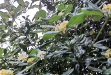 木樨 Lour.),又名桂花、丹桂、刺桂、四季桂等,为木樨科木樨属的一种常绿乔木或灌木。木樨树冠球形或扁球形;叶片革质椭圆形、长椭圆形或椭圆状披针形叶片;聚伞花序簇生于叶腋,花具芳香,…全部>>