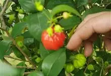 红果仔是桃金娘科番樱桃属的灌木或小乔木。株高可达5米,全株无毛;枝条纤细,稍下垂;叶对生,卵形或卵状披针形,先端渐尖或急尖,基部圆或微心形;花白色,单生或数朵呈聚伞状生于叶腋,…全部>>