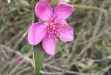 桃金娘 Hassk.),桃金娘科,桃金娘属灌木植物,其高可达2米;幼枝密被柔毛;叶对生,椭圆形或倒卵形;花有长梗,常单生,紫红色,花药圆形;果为浆果,卵状壶形,熟时紫黑色;花期4、5月,…全部>>