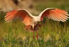 粉红琵鹭:体高87厘米,翼展127厘米,体重1300克,寿命10年。是一种大型涉禽。脚很长,喙长而呈竹片状。成鸟头部光秃及呈绿色,颈部、背部及胸部呈白色,其他的都呈深粉红色。喙呈灰色。雄鸟和雌鸟相似…全部>>