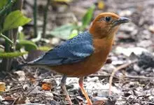 橙头地鸫是鸫科、地鸫属中型鸟类,体长18-22厘米。整个头、颈和下体橙栗色,其余上体包括两翅和尾蓝灰色或橄榄灰色,翅上多具白色翅斑。虹膜褐色或棕褐色,嘴黑褐色或黑色,脚橙黄色或肉黄色。特征极明显。…全部>>