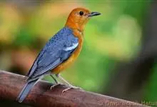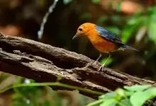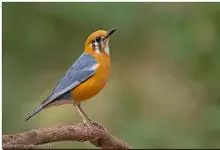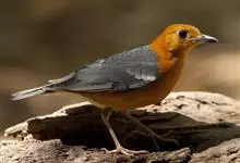 橙头地鸫是鸫科、地鸫属中型鸟类,体长18-22厘米。整个头、颈和下体橙栗色,其余上体包括两翅和尾蓝灰色或橄榄灰色,翅上多具白色翅斑。虹膜褐色或棕褐色,嘴黑褐色或黑色,脚橙黄色或肉黄色。特征极明显。…全部>>